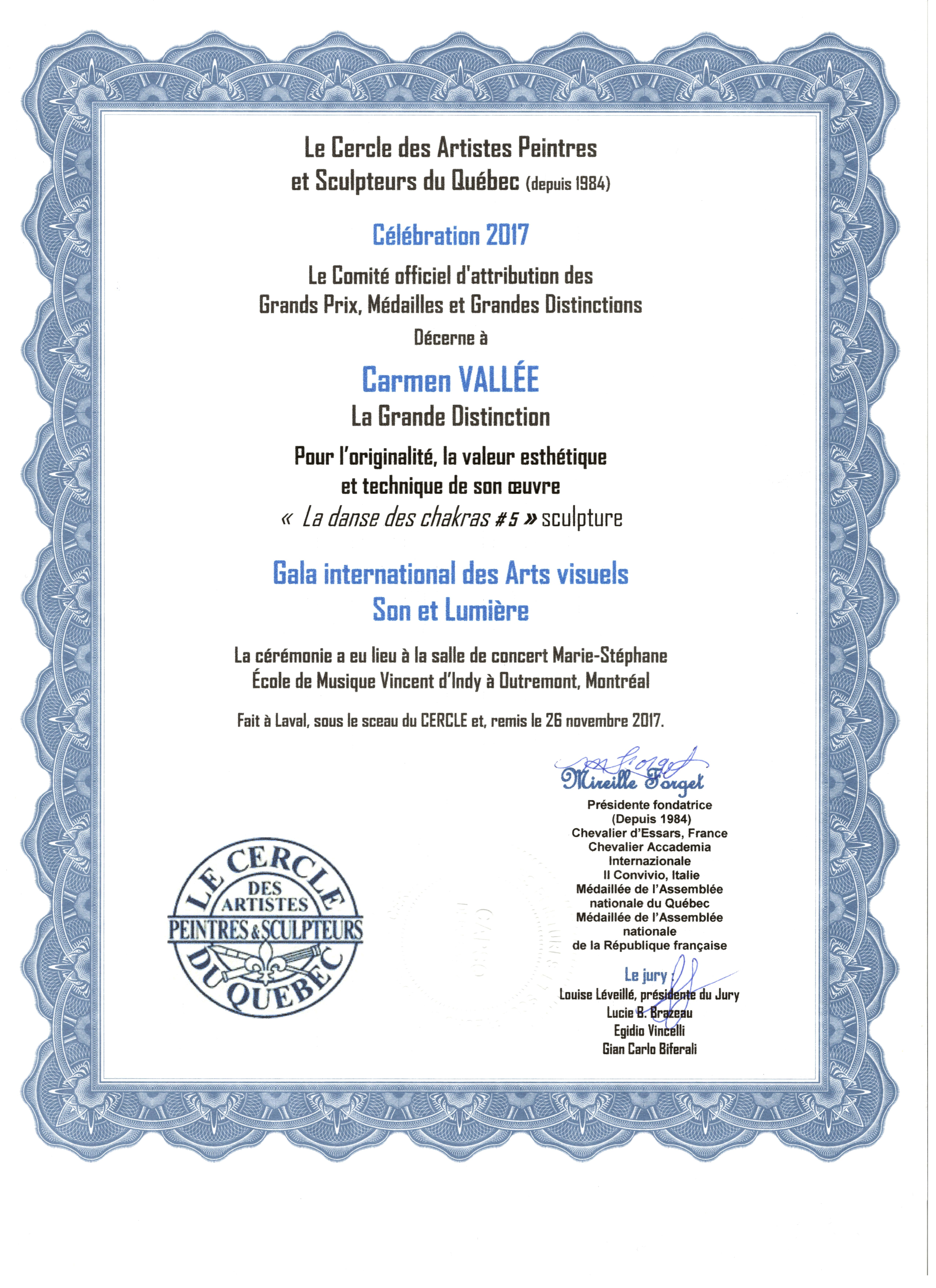 j'ai gagné le prix "La Grande Distinction en Sculpture" avec deux de mes sculpture de