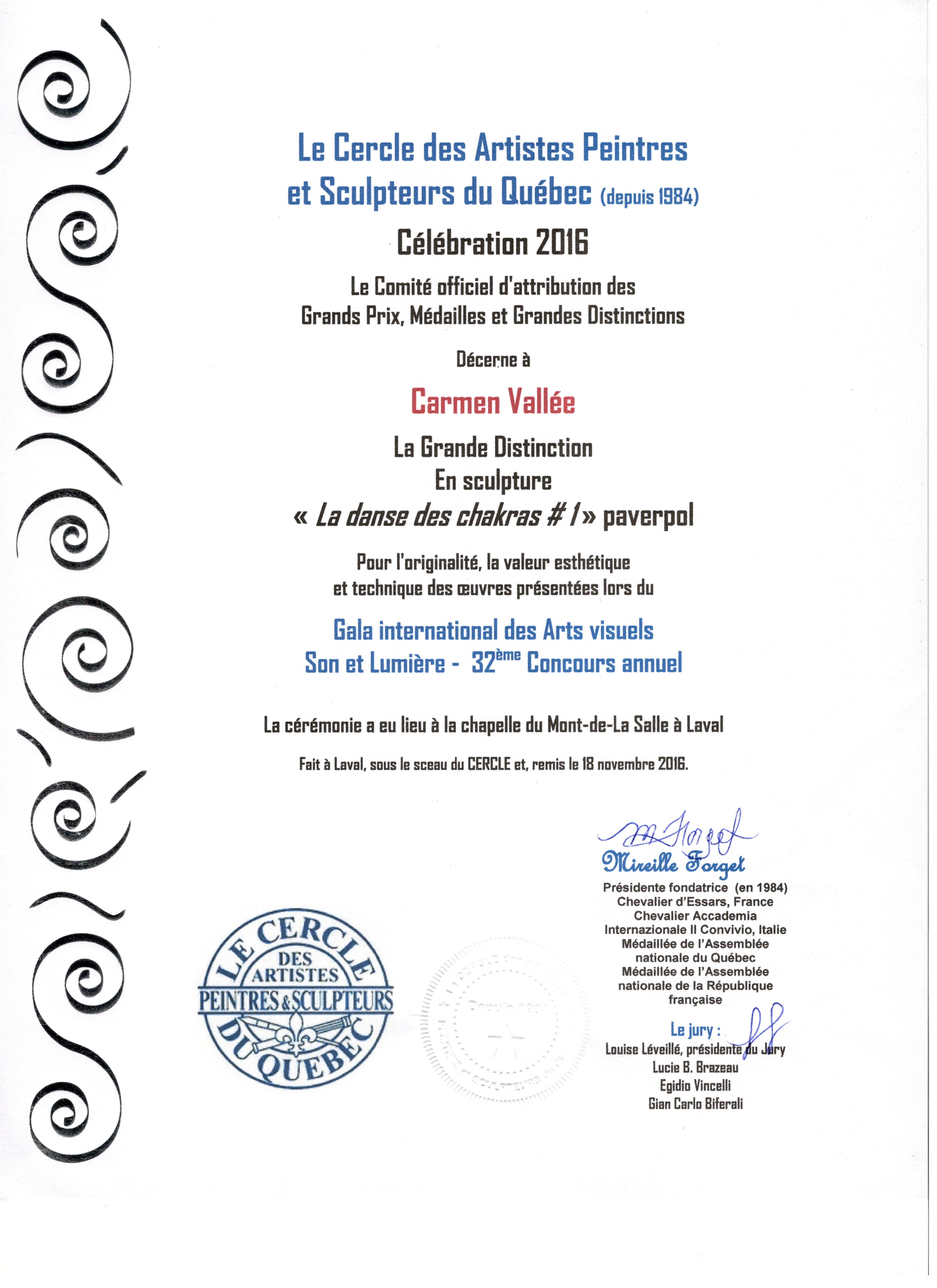 j'ai gagné le prix "La Grande Distinction en Sculpture" avec deux de mes sculpture de